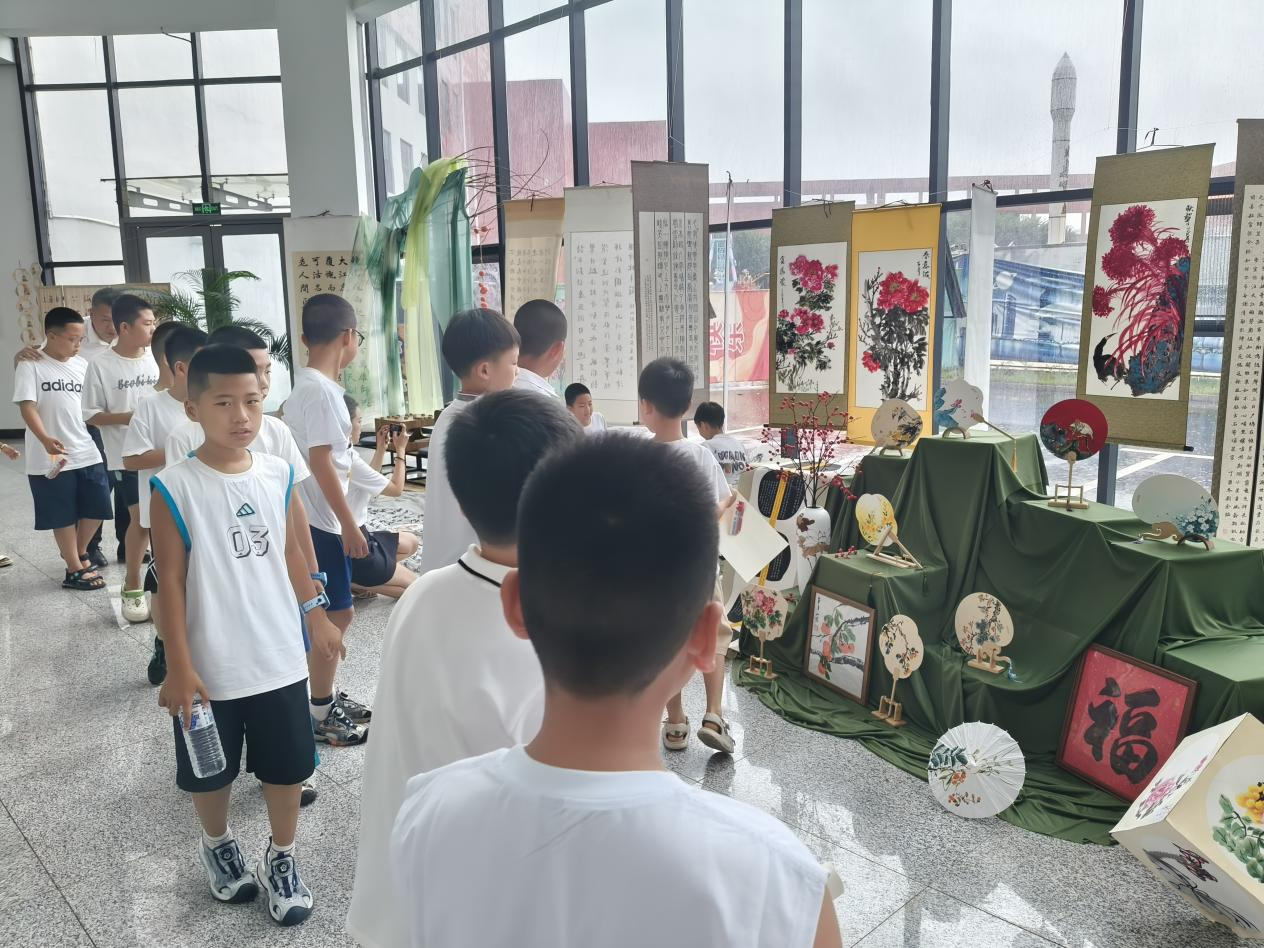 与演出同步开展的“童梦绘星河 书香润梅城”书画展同样引人驻足,成为典礼的另一道亮丽风景。绘画作品里,藏着孩子们眼中的 “星河世界”:宇航员与书本共游太空,星星捧着绘本眨眼睛,这些充满想象力的画面,是他们对 “梦想” 与 “知识” 最浪漫的解读;书法作品中,“读万卷书”“星河入梦”等字句虽稚嫩却工整,一笔一划里,满是书香熏陶下对文字的敬畏与热爱。
