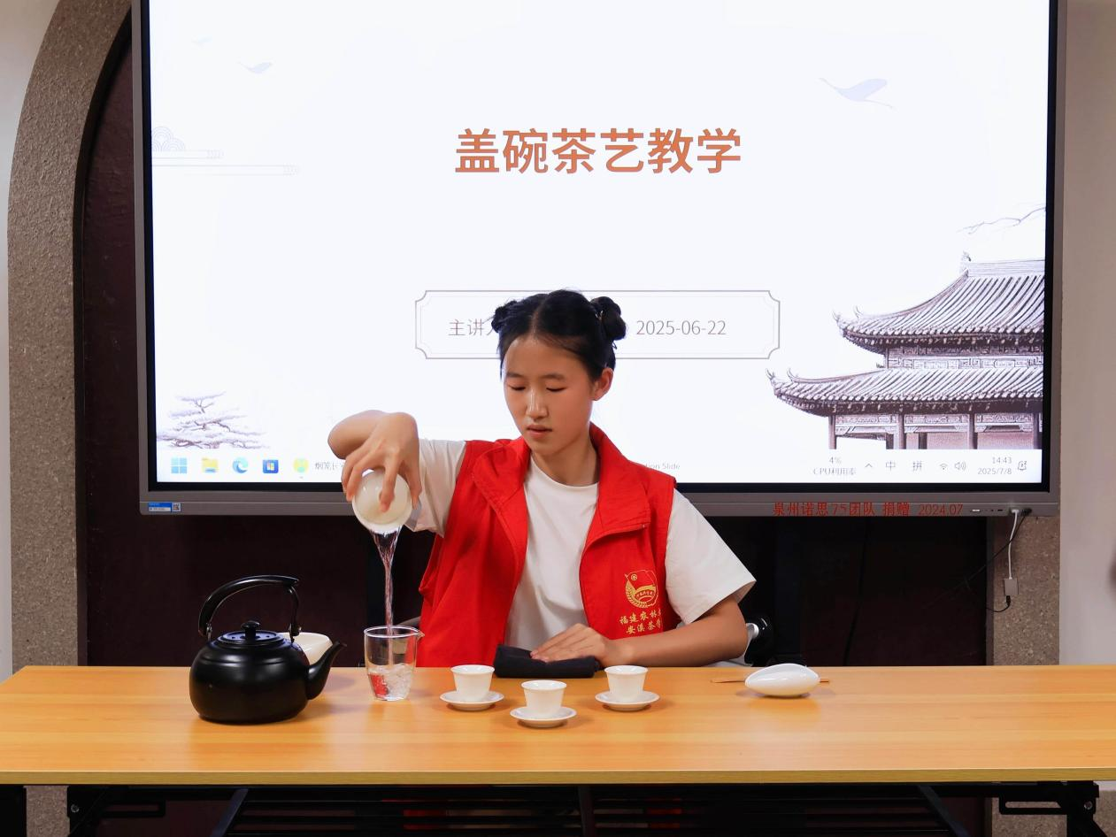 “让茶文化在乡村青少年心中生根发芽,是我们专业实践的重要目标。”安溪茶学院党委书记黄成茂表示,学院始终将服务地方文化振兴作为办学使命,此次支教活动是校地协同推进文化传承的有益尝试。支教活动进入第五天,队员们始终热情投入,这是福建农林大学安溪茶学院深化“产学研用”融合、推动专业服务乡村振兴的生动实践。队员们将理论知识转化为服务基层的实际行动,既丰富了农村青少年的暑期生活,也为中华优秀茶文化传承创新注入了青春活力。下一步,学院将持续推动此类实践活动常态化开展,引导更多青年学子扎根基层、服务社会,在助力乡村文化振兴的征程中贡献智慧与力量,以青春之我建设青春之中国。(通讯员 宋晓瑶)