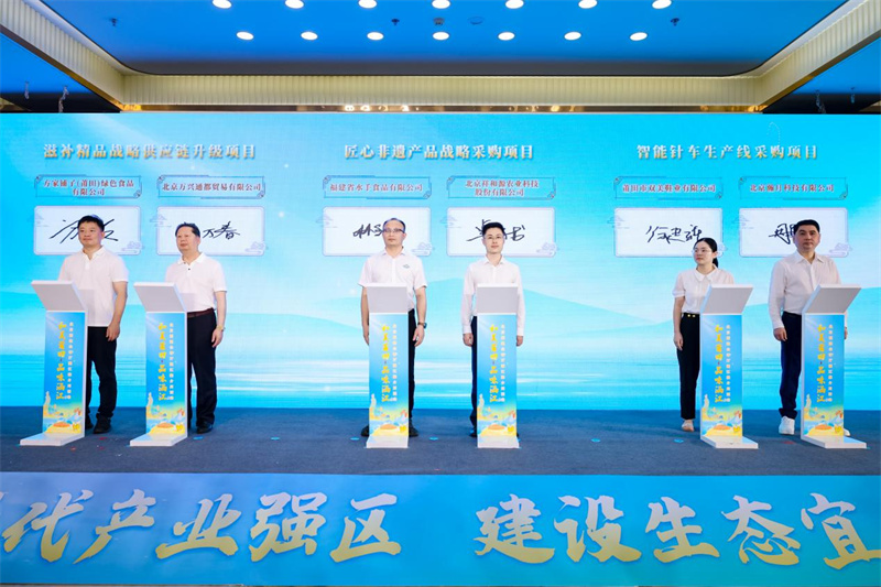 现场举行项目签约仪式,涵盖招商项目和产销对接项目。其中,招商项目共签约6个,总投资124.6亿元,分别是清华海峡两岸零碳智算数据港项目、海尔智能家居供应链及研发项目、召远汽车内饰包覆件项目,海峡汽车产业科创园项目、重庆光大百龄帮康养项目、东建跨境电商产业园项目。产销对接项目共签约6个。现场还举行招商和文旅推介,商机涌动。现场精心布置的展馆充满涵江元素,展馆内产业综合展区、涵江优质企业臻选优品展区、“一县一桌菜”涵江山水侨乡宴展区、文旅展区,文创产品与非遗美艺等,全方位呈现“涵江智造”“涵江味道”的独特魅力,引来各方关注,更吸引众多嘉宾、客商到场了解,商洽合作。