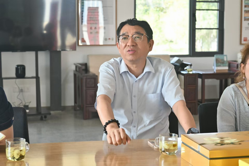 随后,张建威通过一串数据和几个生动案例,剖析了滁菊产业存在的“成长烦恼”:种植技术不够标准、加工链条短、品牌名气大但溢价能力弱。“传统优势得加上现代劲儿才行,”他笑着打比方,“从地里到嘴里,每一步做得更好,这朵‘金菊’才能变成村民的‘钱袋子’。”