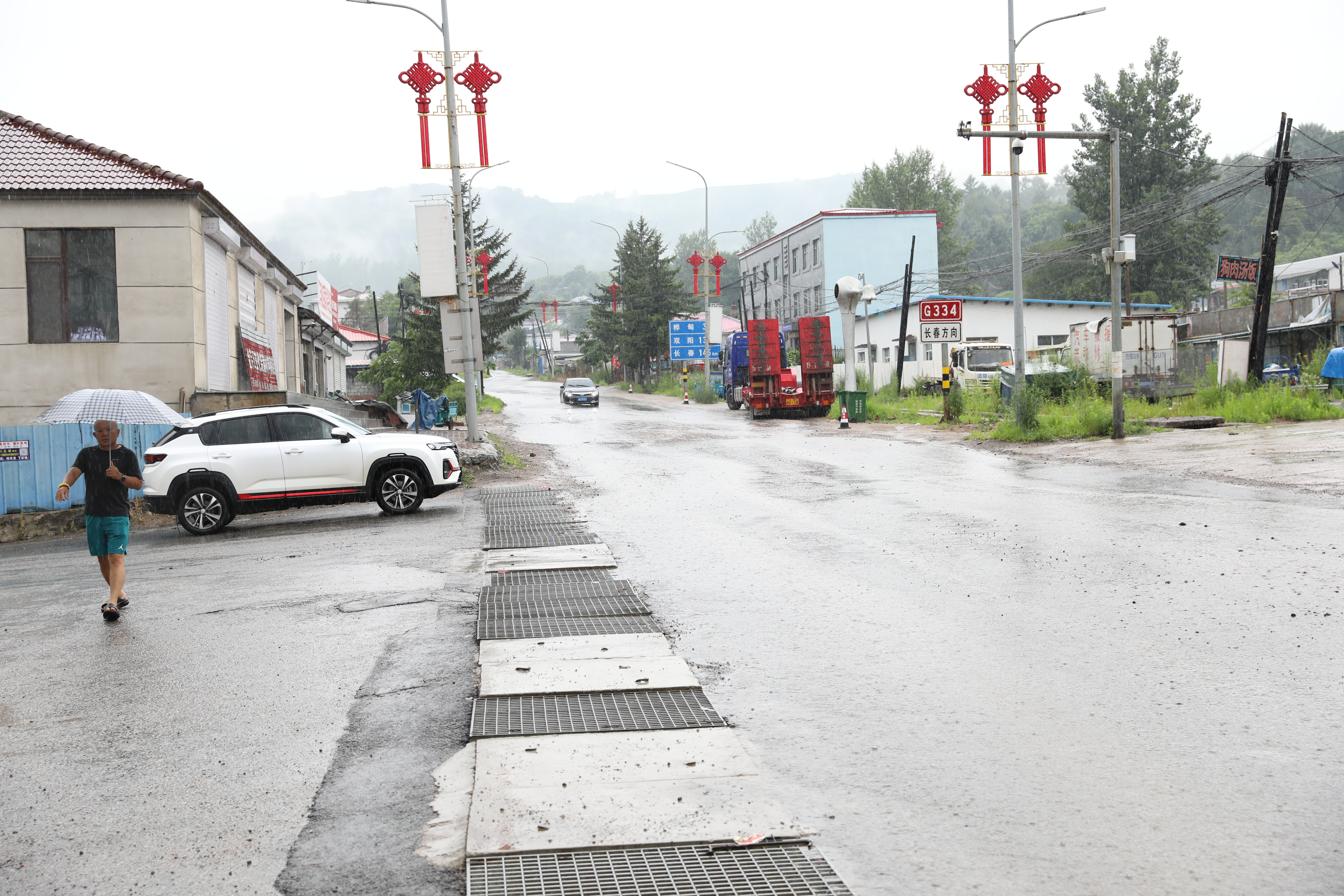 (图片说明:过去水患严重的334国道红石临江段在降雨期间路面无积水。)