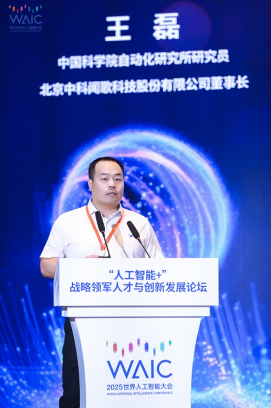 中国科学院自动化所研究员、中科闻歌董事长王磊以“企业级人工智能技术发展与应用”为题发表演讲。他介绍,中科闻歌拥有十余年大数据、人工智能技术的理论研究、技术研发及应用实践积累,集聚了一批来自于中国科学院、清华大学等高校的AI领域顶尖人才,打造了从数据到模型到智能决策的全链条企业级AI平台,已服务众多行业级头部客户。他表示,未来将继续深耕市场,推动人工智能技术广泛应用与产业化发展。而在人才培育方面,王磊主张产学研结合的重要性,通过与高校、科研机构的合作,共同培养跨学科、复合型AI人才,为人工智能技术在企业中的深度应用,提供强有力的人才支撑。