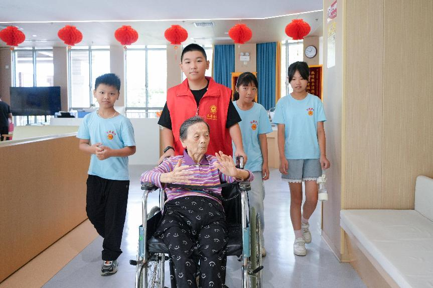 “看着孩子们有条不紊地推着轮椅,细心照顾老人的样子,我真的特别触动。”华侨大学的志愿者林滢说,“从刚来时的些许拘谨,到现在主动承担起责任,能明显感受到他们在这次活动中真正长大了,学会了用行动表达关爱。而老人们被孩子围绕时的那种开心,也让我们看到了代际互动带来的双向温暖。”