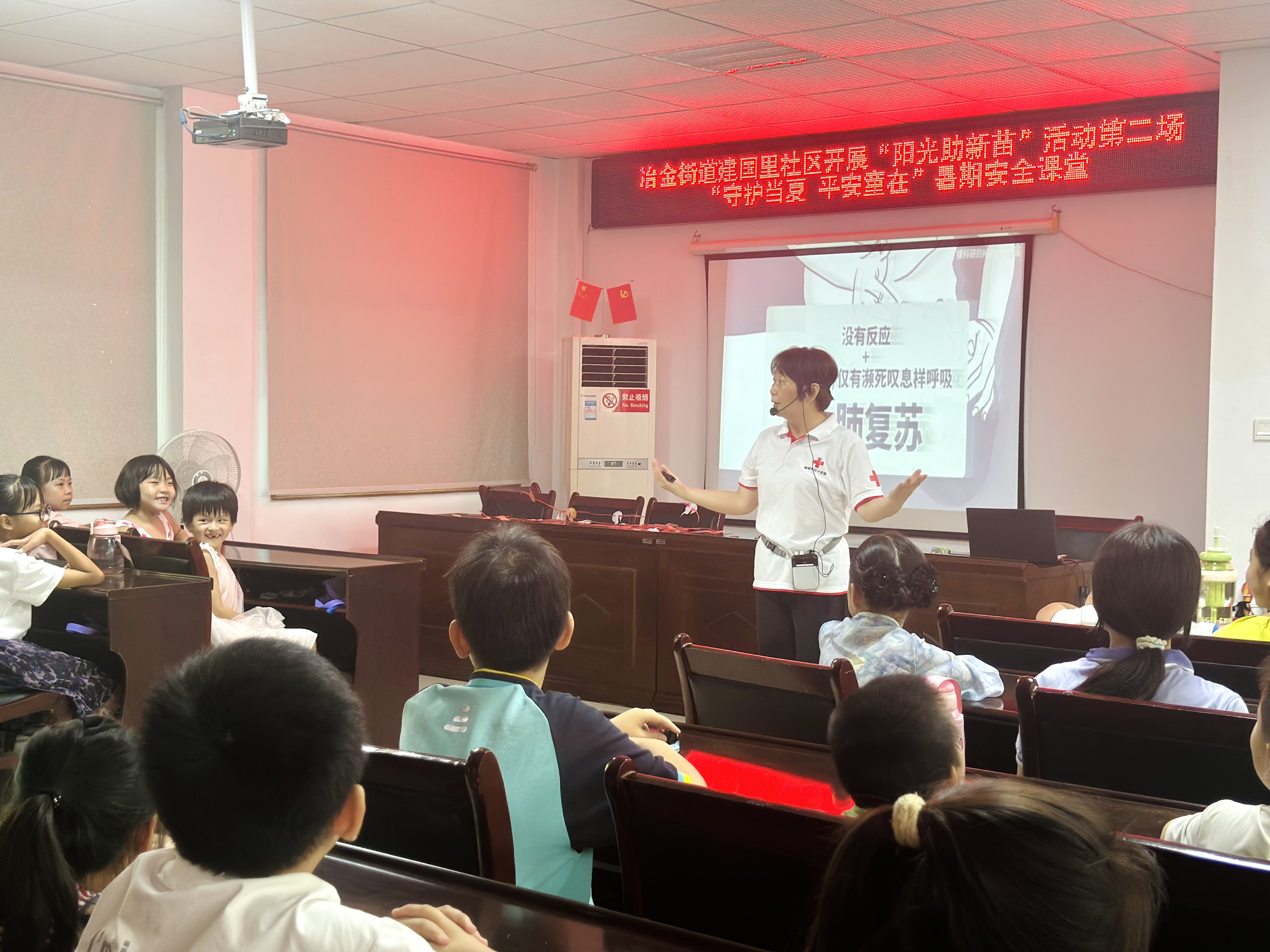 为切实强化辖区未成年人暑期安全防护,7月31日,建国里社区联合珠晖区红十字会开展了“阳光助新苗”活动第二场——“守护当夏 平安童在”暑期安全课堂。