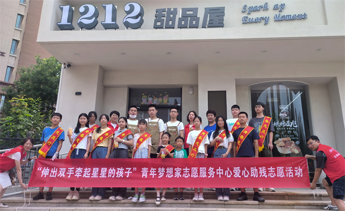 社区文化网讯(张晋 报道)近日,天津市经开区的1212甜品屋内充满温馨与欢乐,一场意义非凡的“伸出双手牵起星星的孩子”主题活动在此热烈开展。此次活动由经开区团委主办,青年梦想家志愿服务中心与1212甜品屋共同承办,吸引了来自开发区国际学校、泰达一中、泰达实验学校、生态城一中等校的13名青年梦想家志愿者踊跃参与,他们与大龄自闭症青年——那些被称作“星娃”的孩子们携手,一同开启了一段难忘的创业体验之旅,用爱搭建起一座通往彼此心灵的温暖桥梁。