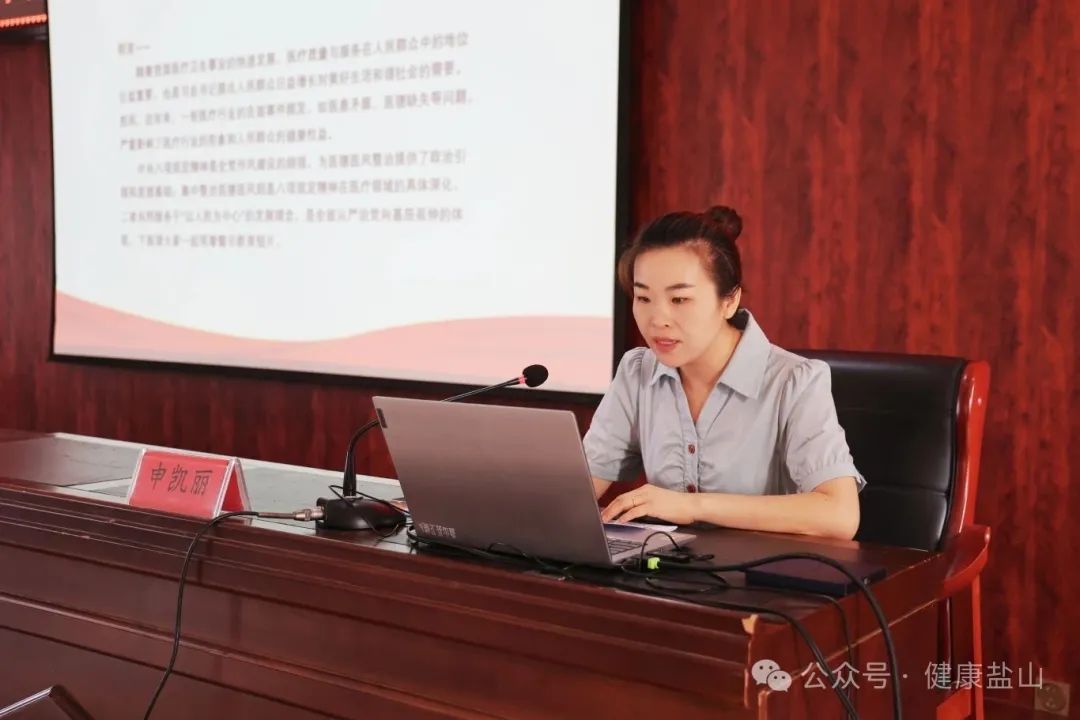 随后,由盐山县人民医院纪检室主任申凯莉对参会人员围绕医务人员行为规范、医患沟通技巧、医疗纠纷防范等内容进行培训,通过理论讲解与实践指导相结合的方式,提升了医务人员的职业素养和服务能力。