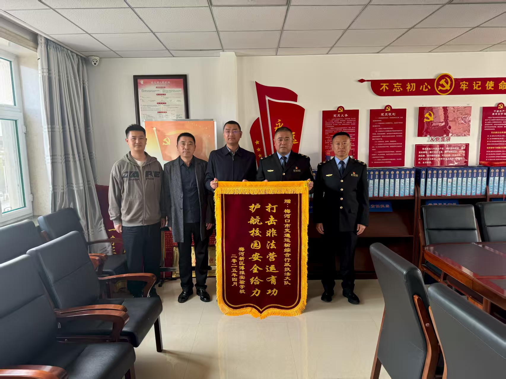4月30日,梅河口市博雅学校领导把印有“打击非法营运有功 护航校园安全给力”的锦旗送到市交通运输综合行政执法大队。针对博雅实验学校周边路段出租车乱停乱放、揽客喊客等现象,市交通运输综合行政执法大队开展“净化校园周边交通问题顽瘴痼疾,共建文明校园”整治行动,对学校路口及周边乱停乱放和喊客拉客的出租汽车进行了集中治理,进一步规范了校园周边交通运输秩序,有效维护了校园周边的安全环境。