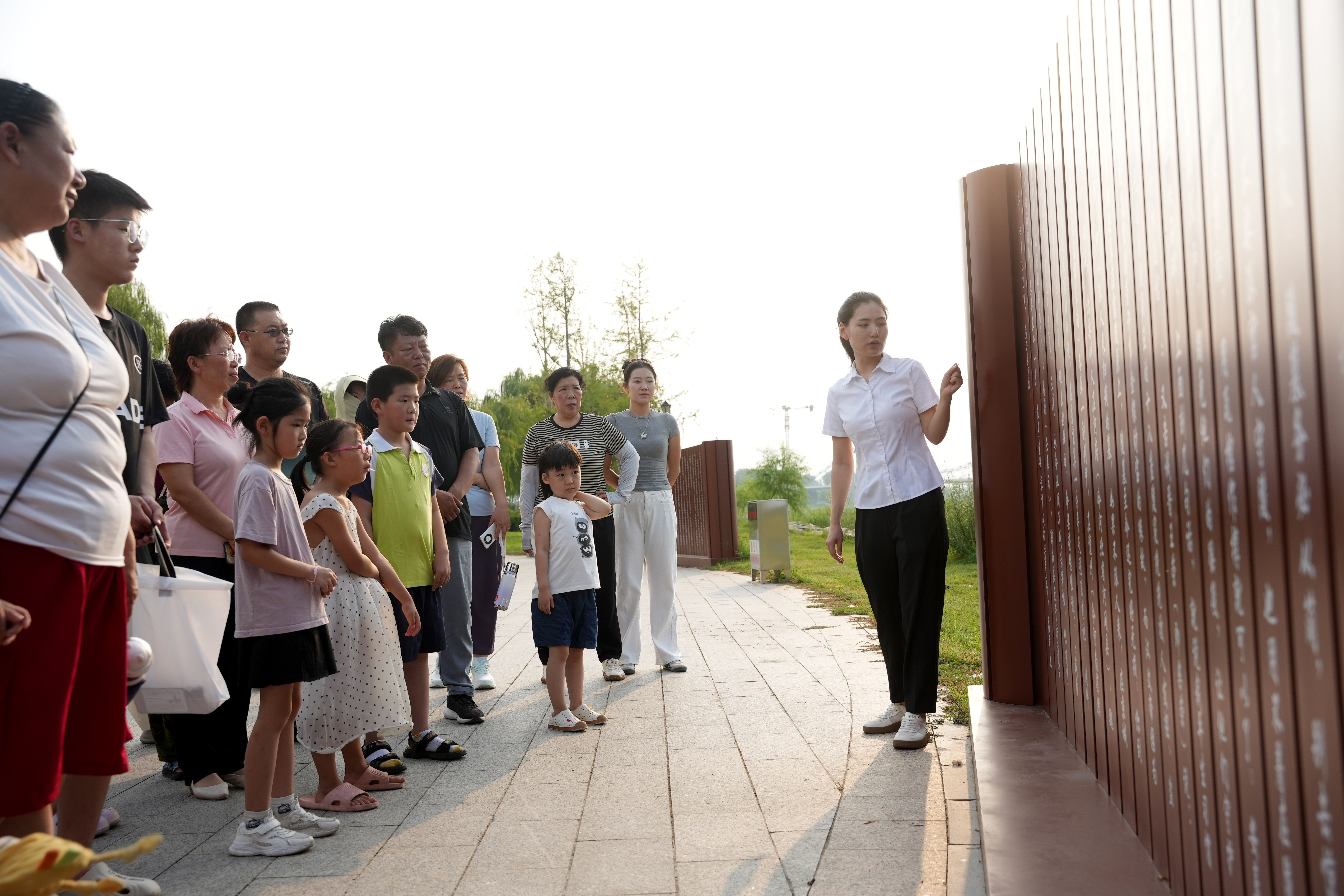 河北省隆尧县汦河南岸,隆尧县纪委监委工作人员正在带领社区居民、学生参观廉洁文化长廊。张冬茹 摄