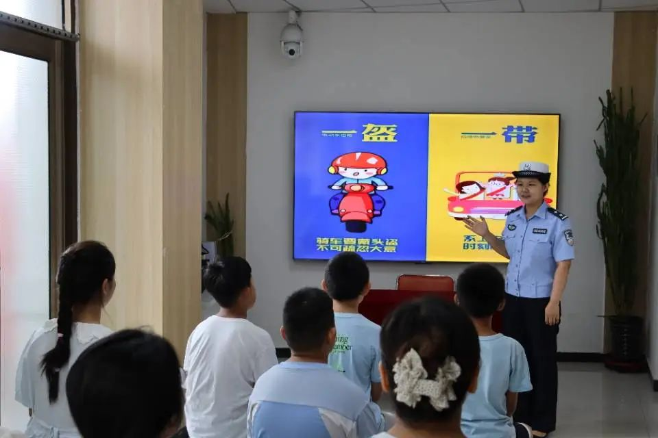 暑假临近尾声,为切实增强中小学生交通安全意识,深入普及 “一盔一带” 安全知识,有效预防和减少涉及未成年人的交通事故,承德市公安局交通警察支队直属三大队走进双滦区福溪帝苑社区,为中小学生精心打造了一场趣味十足、互动性强的交通安全宣传教育活动,守护孩子们平安出行。