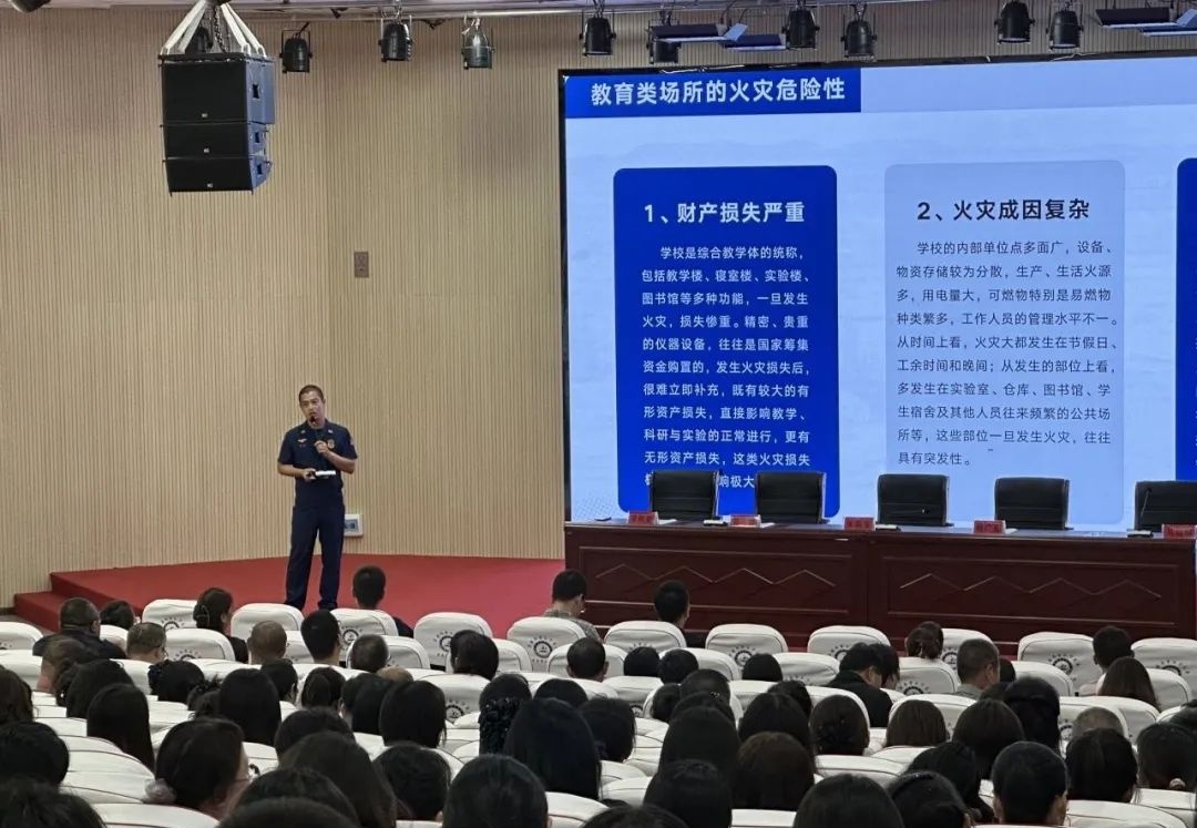 培训进行时,青县新华西路消防救援站站长苗青率先开展消防安全培训,30分钟的课程中,苗站长结合校园消防典型案例,从消防设施维护、疏散通道管理、用火用电规范、应急疏散演练等关键环节入手,详细讲解校园消防安全要点,帮助参会人员掌握火灾预防与应急自救的实用技能。