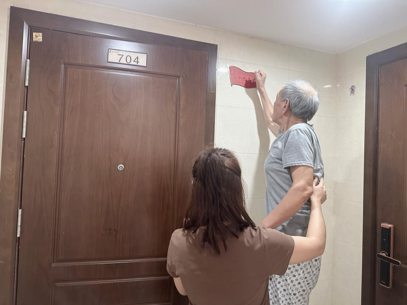 八月明媚的阳光洒进长沙市雨花区黎托街道星河社区,一位鹤发童颜的老人正站在木凳上,专注地加固门前那块鲜红的“共产党员户”牌匾。每一记敲击,沉稳而扎实,仿佛叩响的不仅是钉子,更是岁月沉淀下来的信仰与坚守。