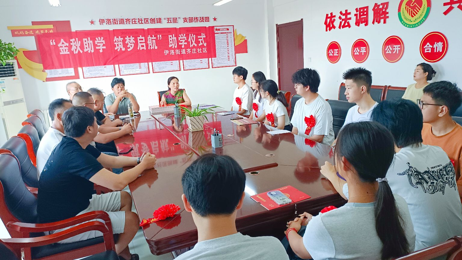 近日,一场以“金秋助学 筑梦起航”为主题的助学仪式在伊洛街道齐庄社区圆满举行。活动现场,10名品学兼优的社区学子成为焦点,他们不仅收获了沉甸甸的助学资金,更感受到了来自社区、人大代表与社会各界的深切关怀,这份温暖助力,正为他们的求学之路“添砖加瓦”。
