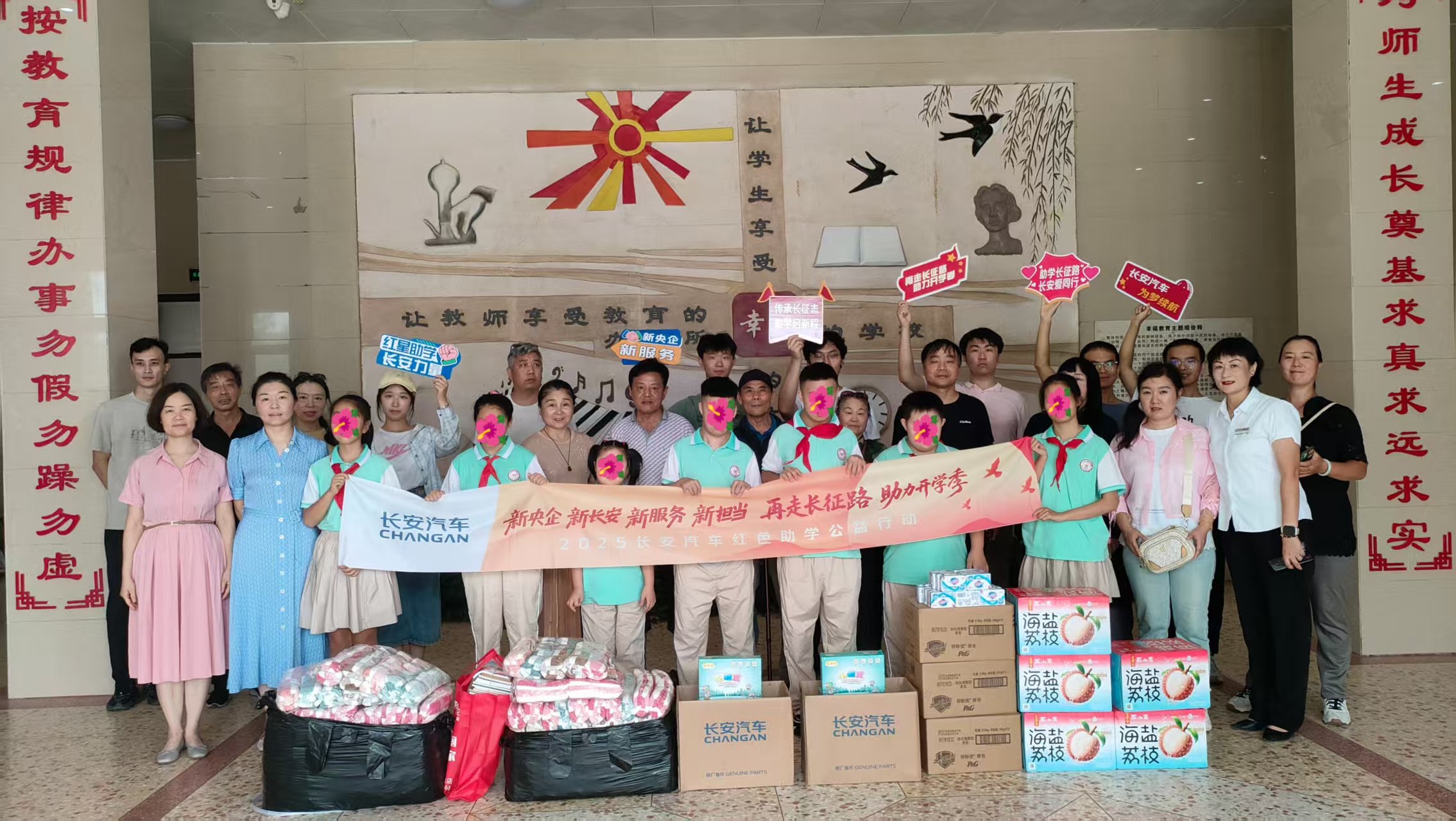 8月29日上午,“再走长征路,助力开学季”红色助学公益行动温暖上演。金明池街道团工委、妇联携手开封博奥集团旗下开封汇金长安店、中州国际饭店,以及大学生志愿者和长安汽车客户代表,共同走进开封市特殊教育学校,为孩子们送去新学期的关怀与祝福。