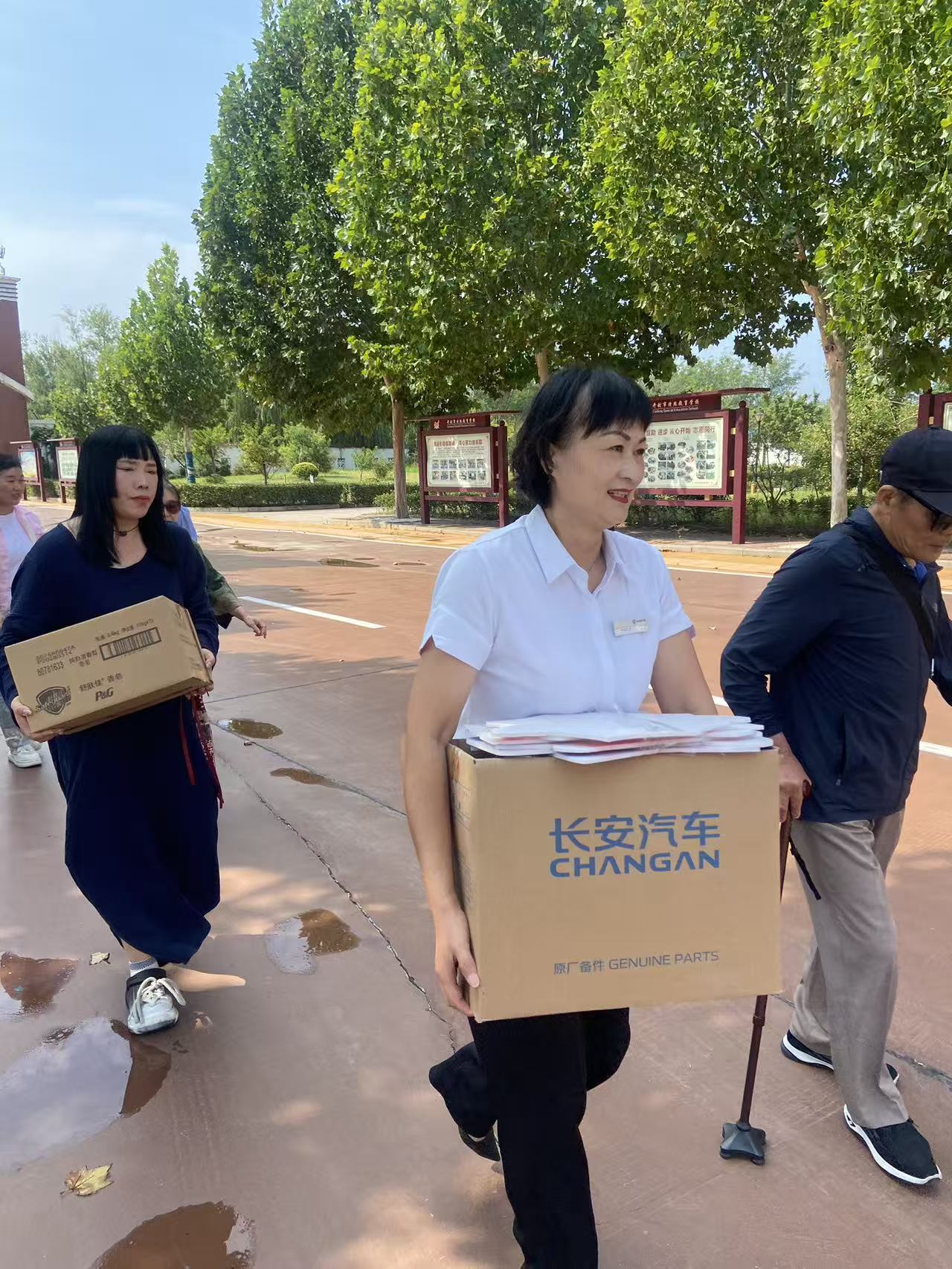 活动现场,爱心团队带来了香皂、毛巾、洗发水等生活用品,以及矿泉水和各类图书,满满当当的物资堆成了小山,承载着对孩子们的殷切期望。大学生志愿者和客户代表们主动上前,有条不紊地搬运物资,大家分工协作,忙碌的身影成为校园里一道暖心的风景线。