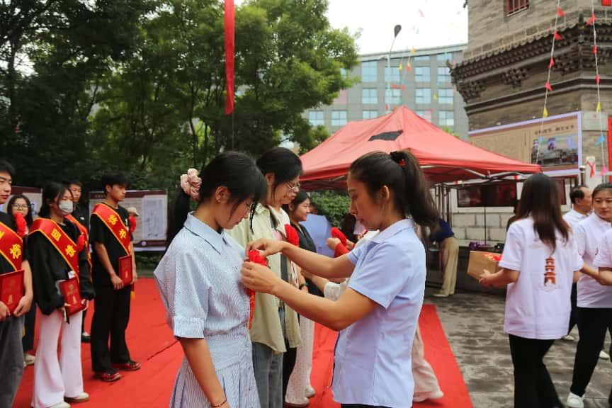 活动在气势雄浑的非遗社家鼓中拉开帷幕。在万众瞩目下,47名学子分批上台领奖,晋源区文旅、文联等部门相关负责同志,西寨村委会班子及西寨历史文化研究会成员为他们披挂绶带、佩戴红花并颁发荣誉证书。随后,学子们齐声合唱《黄河大合唱》《没有共产党就没有新中国》《社会主义好》《歌唱祖国》等革命歌曲,铿锵激昂的旋律回荡在广场上空,振奋人心。
