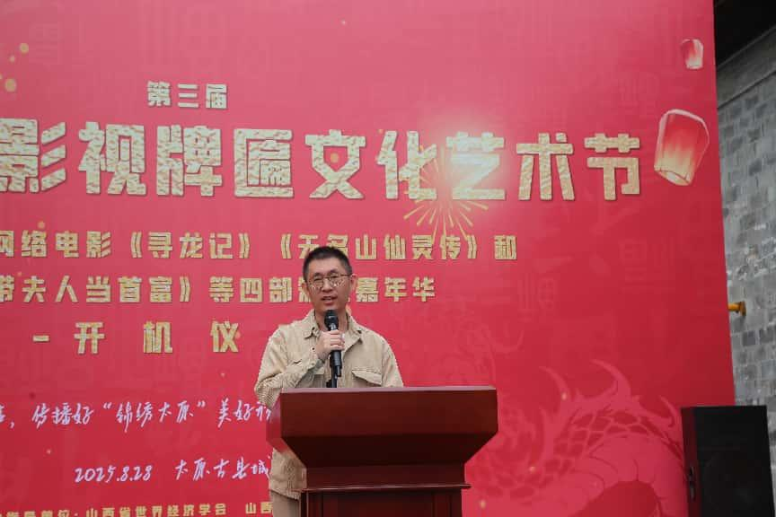社区文化网讯(李锐娜 报道 通讯员 杨润德 崔莉霞)锦绣太原城,山水新晋源。8月28日,由山西省世界经济学会影视专委会指导,太原影旅开发集团有限公司、山西乾阳影旅版权管理股份有限公司主办的大型魔幻网络电影《寻龙记》《无名山仙灵传》及《我带夫人当首富》等四部短剧开机仪式在太原古县城乾阳影谷民歌民居基地举行,主创团队、演职人员及社会各界人士等共200余人参加。