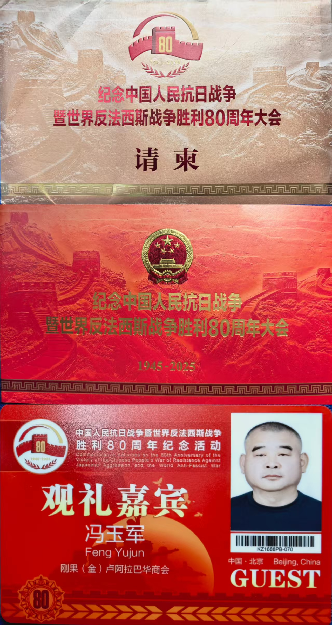 据悉,这次阅兵受邀观礼的嘉宾资格是定向邀请制,每一位能到现场观礼的嘉宾都是由相关部门根据国家统一规划和安排进行邀请与组织的。今年55岁的冯玉军,作为侨胞代表,登上了“九三”阅兵观礼台,亲眼见证了这伟大的历史时刻。