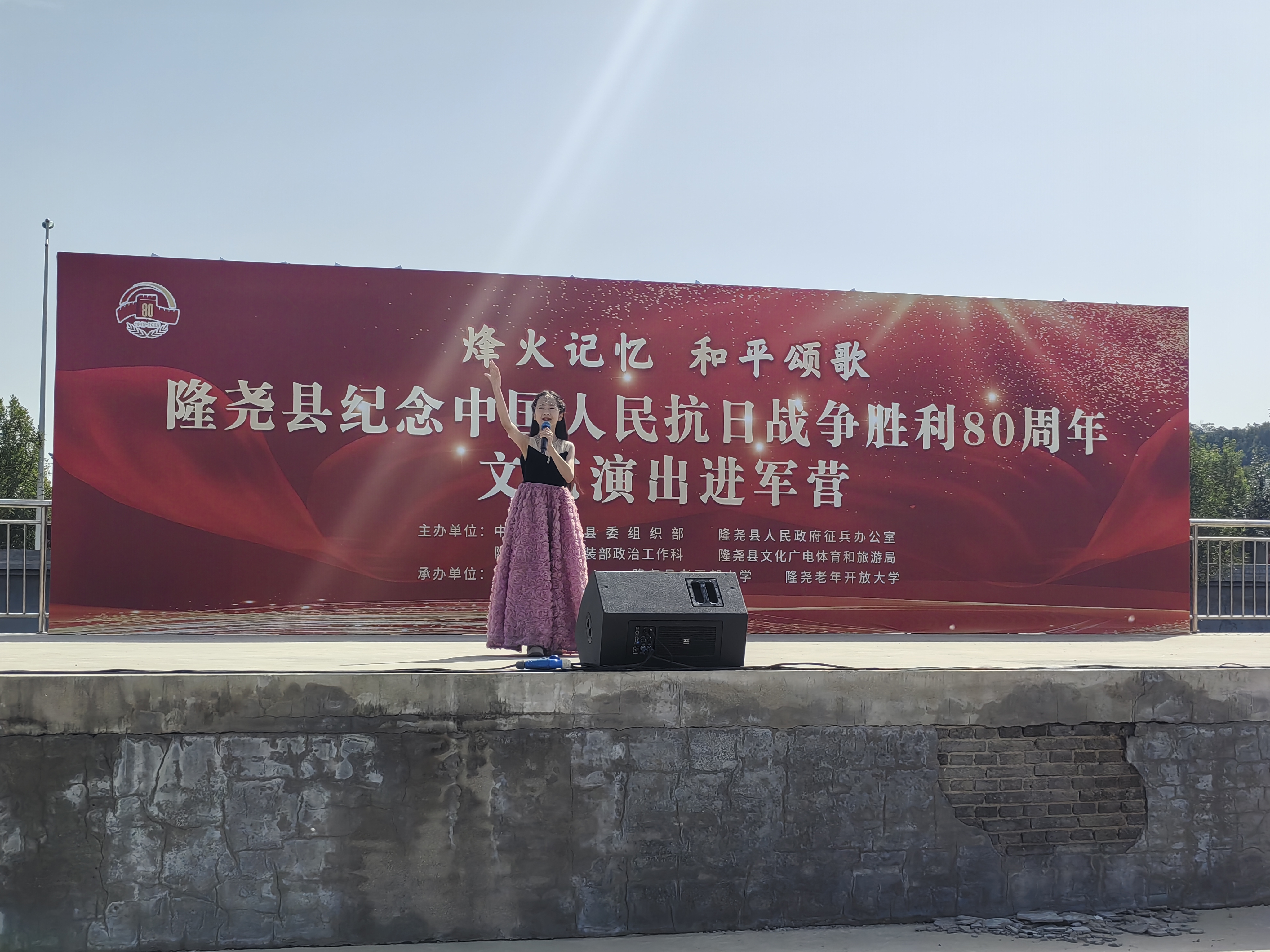 9月7日,隆尧县文艺志愿者走进隆尧县民兵训练基地,为官兵们献上了一场主题为“烽火记忆 和平颂歌”的红色文艺演出。
