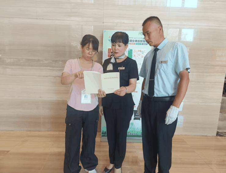 曲江新区以“法律条文宣贯+督导检查”并行的工作模 式,开启“上门传经”专项行动。垃圾分类监督员化身 “普法专员” ,深入辖区百余家物业服务企业,通过“ 一 对一”送《条例》上门的方式,确保每位物业管理者精 准掌握法规内容,并围绕垃圾分类投、收、运以及物业 企业的责任与义务,结合物业管理实际场景案例为物业 人员答疑解惑,助其吃透法规政策,进一步提升垃圾分 类工作精细化管理水平。