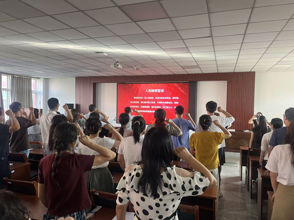 教师们身姿挺拔、紧握右拳,神情坚定。每一道目光都透露出他们愿为这“太阳下最光辉的事业”奉献终身的信念,为每一个孩子的未来倾注全部心血。