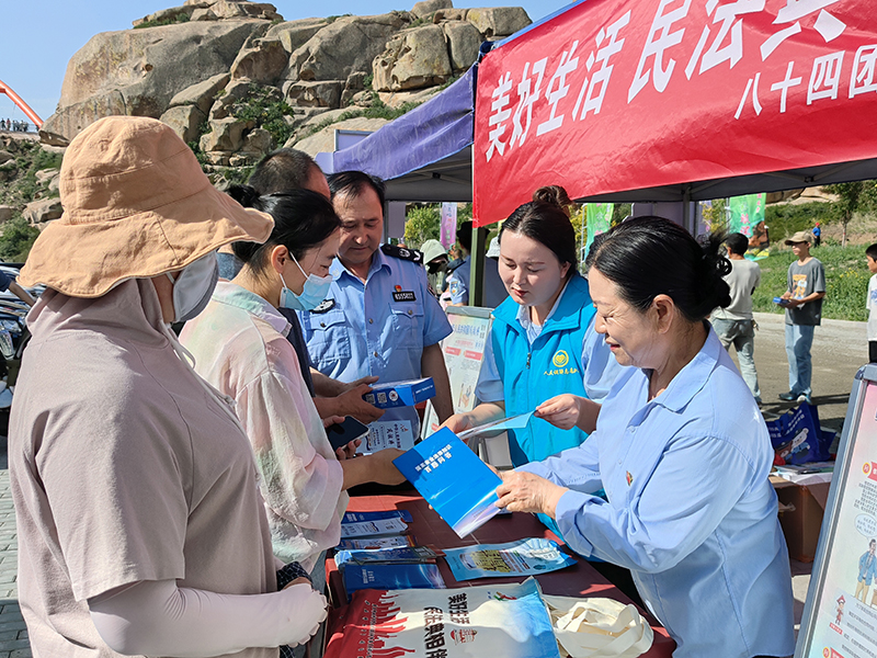 构建双线融合普法新格局。为打破“摆摊式”普法局限,构建“流动+固定”普法网络。八十四团司法所在怪石峪景区、团场社区、公园等阵地开展普法宣传10余场次,通过设立“案例咨询台”解答消费维权、民间借贷、邻里纠纷、劳动争议、物业管理等问题160余人次,发放法治宣传用品2000余份。司法所还以第五师双河市5.19中国旅游日活动为契机,组成普法志愿服务队,走进景区开展“美好生活 民法典相伴”普法宣传活动,覆盖游客800余人次,将普法课堂搬到游客身边,让民法典知识融入山水风光,为游客送上“法治清风”。针对务工人员开展“安心行动”,在工地、市场宣传维权法规,成功化解劳务合同纠纷12起,追回拖欠工资71.4万元。