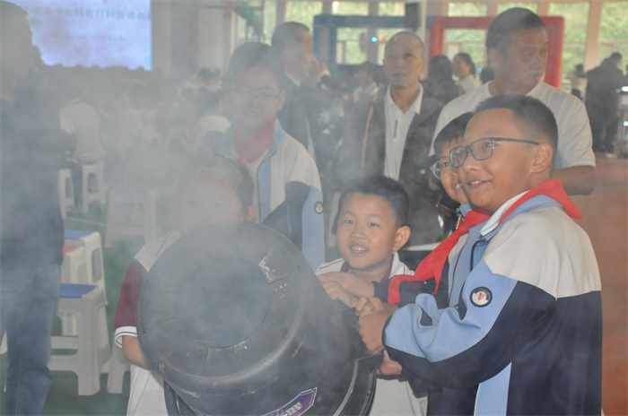 开幕式上,科学的“魔力”率先登场。空气炮发射时,涡旋烟圈如灵动银环穿梭,精准击倒靶标,压缩空气的“无形力量”在眼前具象;面粉爆炸实验中,火光骤起伴随轻缓气浪,粉尘遇明火的危险原理在震撼中清晰揭晓;火焰掌表演更令全场屏息,丁烷在掌心跃动成橘色火焰,却未伤及皮肤分毫,奇妙现象引着孩子们踮脚张望,阵阵惊呼此起彼伏,晦涩的科学原理化作鲜活实践。