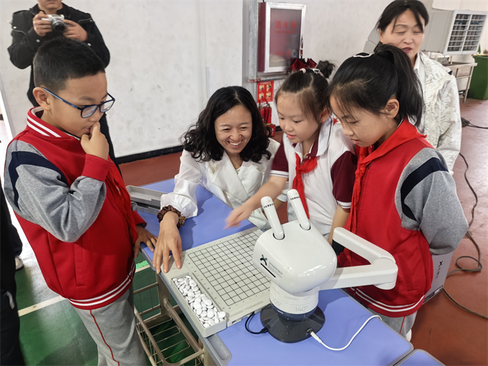 在“马德堡半球”摊位,学生们合力挑战拉开半球,直观感受大气压强的神奇;“静电飞花”实验中,纸屑在摩擦起电作用下轻盈起舞;搭载AI算法的下棋机器人精准落子,引得同学们驻足思考、跃跃欲试。温差发电、人体导电球、克拉尼图形振动实验等项目,让学生在动手实践中理解科学原理,在互动体验中培养创新思维。