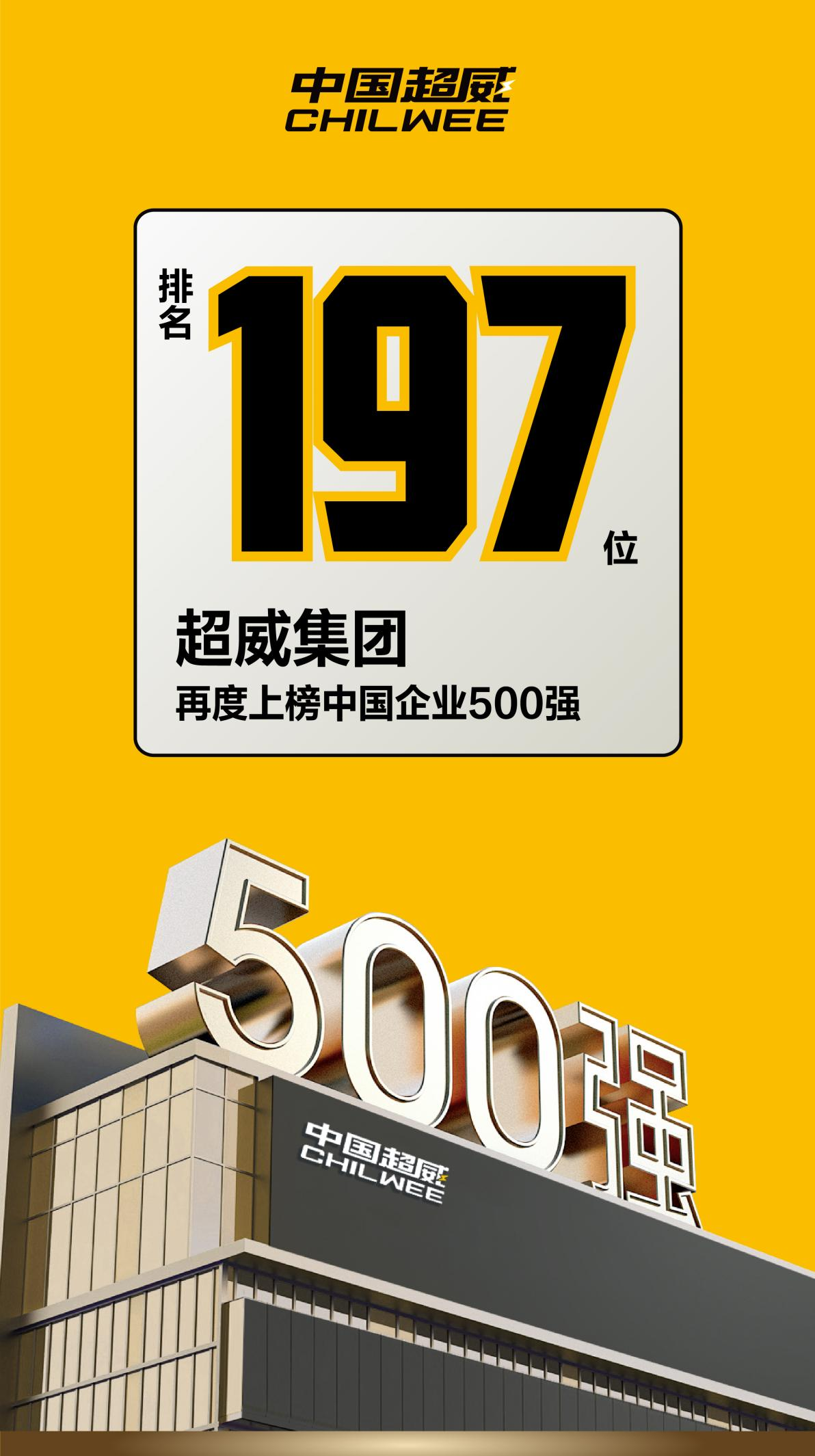 9月15日,中国企业联合会、中国企业家协会发布“2025中国企业500强”榜单,超威集团再度上榜,位列中国企业500强第197位,同时位列中国战略性新兴产业领军企业100强第34位。