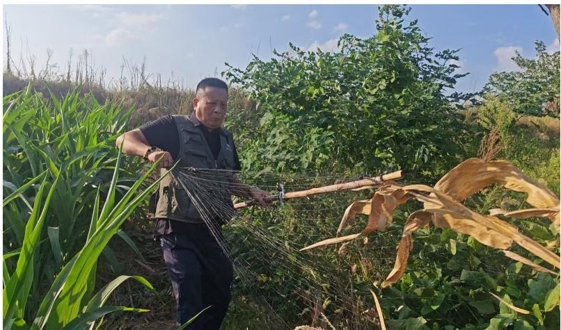湘赣边候鸟守护者在株洲市茶陵县某乡村拆除鸟网。