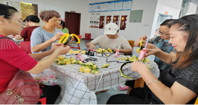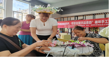 四川成都市新都街道静安社区“簪花不语自有芳华 邻里相聚共品雅韵”趣味手工活动