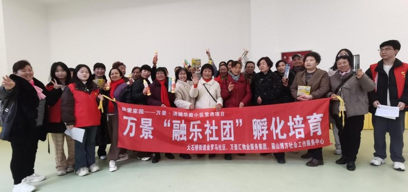 万景·清樾华庭小区(占地面积212亩,29栋楼,5091户,常住人口约1.5万人,入住率97%)。作为超大型小区,曾面临邻里互动不足、治理诉求多元、多元主体协同机制待完善等挑战。为破解治理难题,提升居民主体意识,2024年,万景·清樾华庭小区引入社会组织,创新构建以“居民参与、协作互助”为目标的模式,通过社会组织、社区居委会、小区党支部、物业及业委会“五方联动”(五联),实施“融美空间”“融心共筑”“融乐社团”“融情邻里”(四融)工作,合力打造全龄友好、慈善互助的融爱家园。