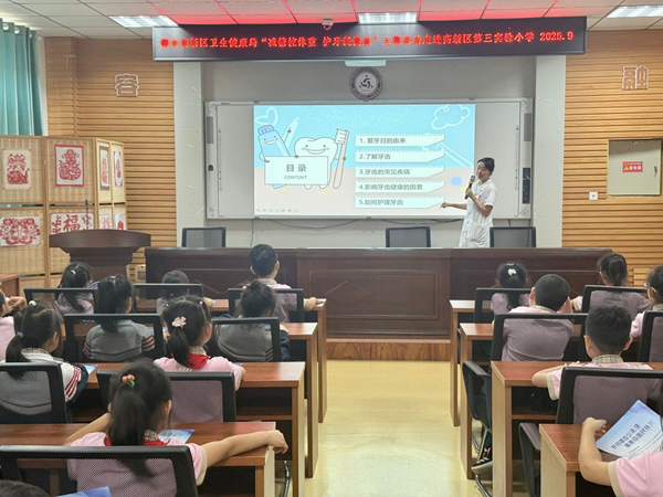 活动现场,来自卫生健康局的专业人员借助生动的PPT,为同学们带来了丰富的健康知识。在护牙知识部分,从爱牙日的由来,到牙齿的结构、常见疾病,再到影响牙齿健康的因素以及科学护牙的方法,讲解细致又易懂,同学们听得十分专注。同时,关于减糖控体重的内容,也让同学们明白了合理饮食、适度运动对保持健康体重的重要性。为了让同学们更好地掌握知识,现场还设置了互动问答环节。同学们积极举手,踊跃参与,在轻松愉快的氛围中巩固了所学内容。