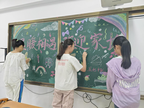 家长会前孩子们和老师一起精心绘制黑板报,真诚欢迎家长们的到来。
