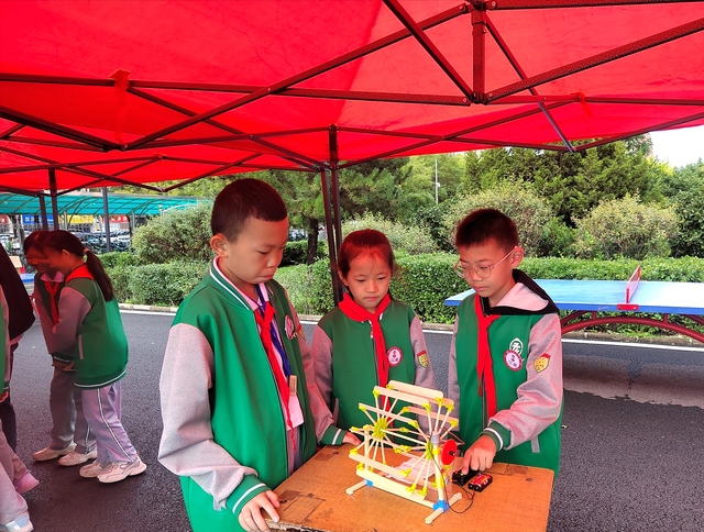 开幕式结束后,科学游园成为全场焦点。学校操场内,18个科技体验摊位星罗棋布,马德堡半球、静电飞花、下棋机器人、摩天轮模型、温差发电、人体导电球、惯性环等实验项目依次排开,化身学生们的“科学乐园”,大家在动手体验中深化对科学知识的理解。