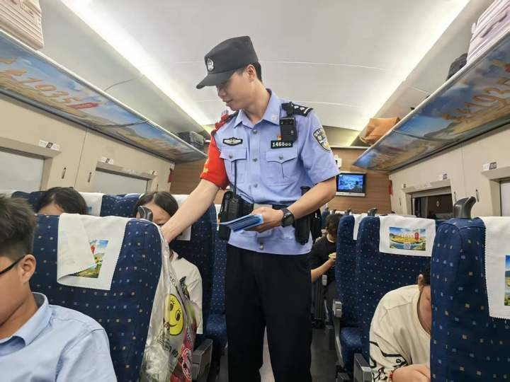 在车站广场、候车室、列车等人流密集区域,民警设立宣传点发放宣传单,耐心向旅客普及网络安全知识,提醒大家防范网络诈骗、保护个人信息。