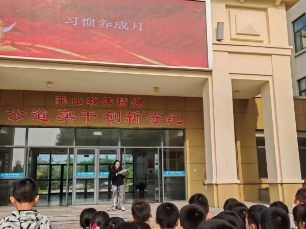 清晨,主题升旗仪式在操场庄严举行。伴随着五星红旗冉冉升起,全体学生神情肃穆,目光专注。大队辅导员张椿燕依据《莱山区中小学养成教育20条》,从学习习惯和行为规范两方面提出具体细致的要求。学生代表李雨真发出倡议,呼吁大家“按时睡觉不熬夜”“认真听好每节课”“不乱扔小纸片”,得到同学们的广泛认同。