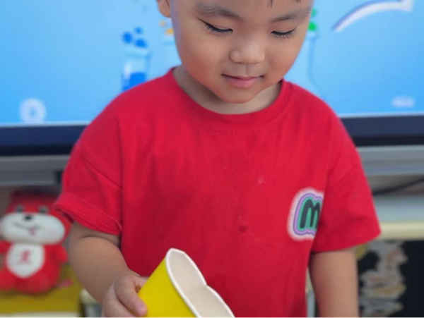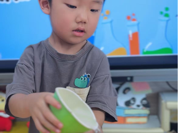 孩子们在老师的帮助下,小心翼翼地用纸杯往水车上浇水。“转起来啦!我的转起来啦!”琳琳兴奋地拍着小手,眼睛笑成了月牙儿。哲哲发现了一个有趣的现象:“老师,我多倒点水,它就转得快!”聪明的观察引得老师连连称赞。