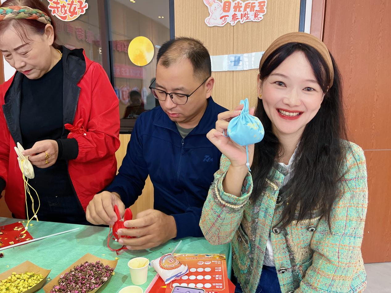 本次游园会以“登高揽月”呼应社区地貌,以“岭上同心”凝聚居民情感,打造了一场集手工、游乐、美食、民俗于一体的盛宴。在“岭间香包坊”区域,居民们亲手制作了月兔造型的香包,自由搭配驱蚊安神、提神醒脑等不同功效的12种香料配方,体验了传统手工艺的魅力。