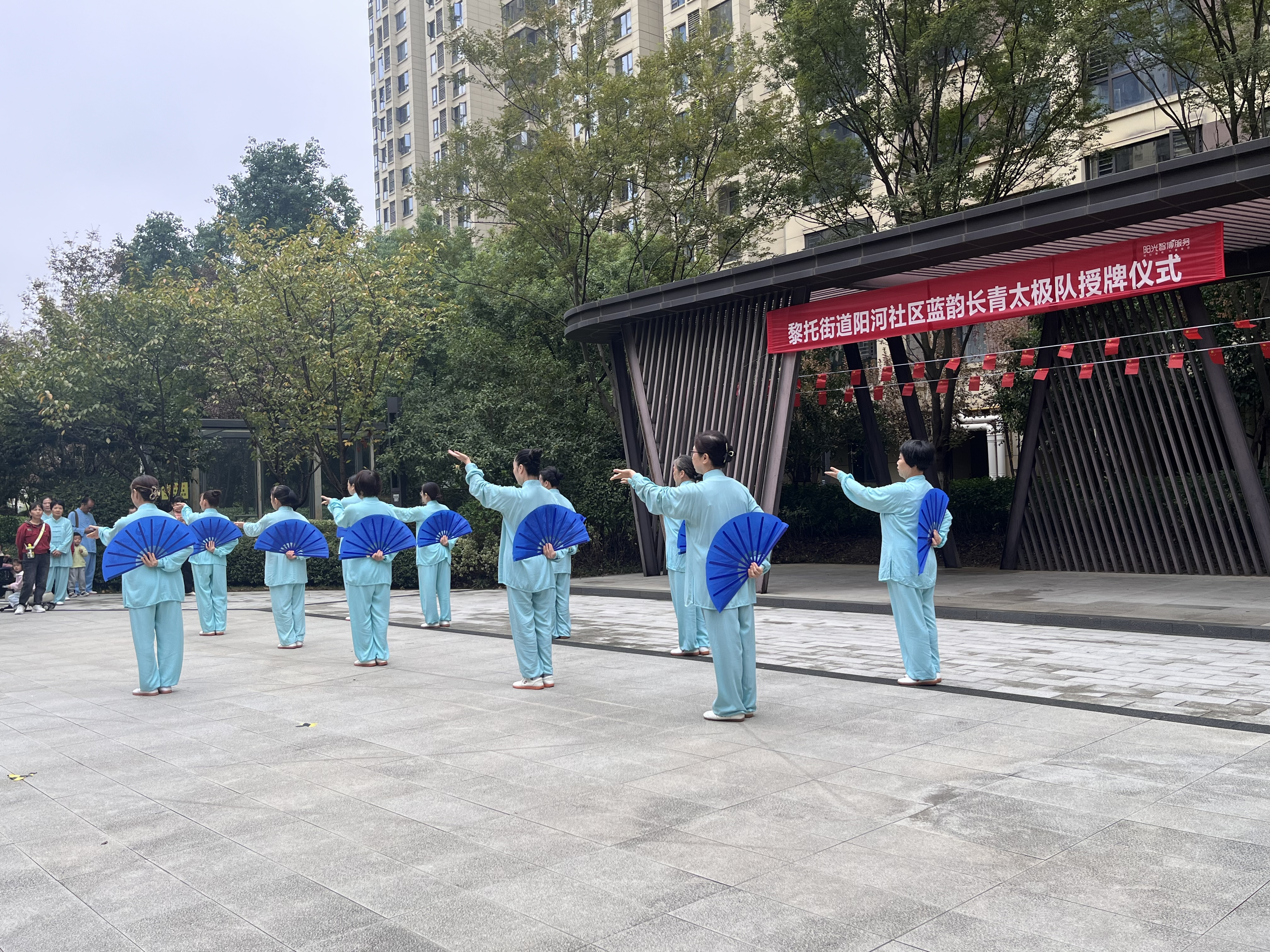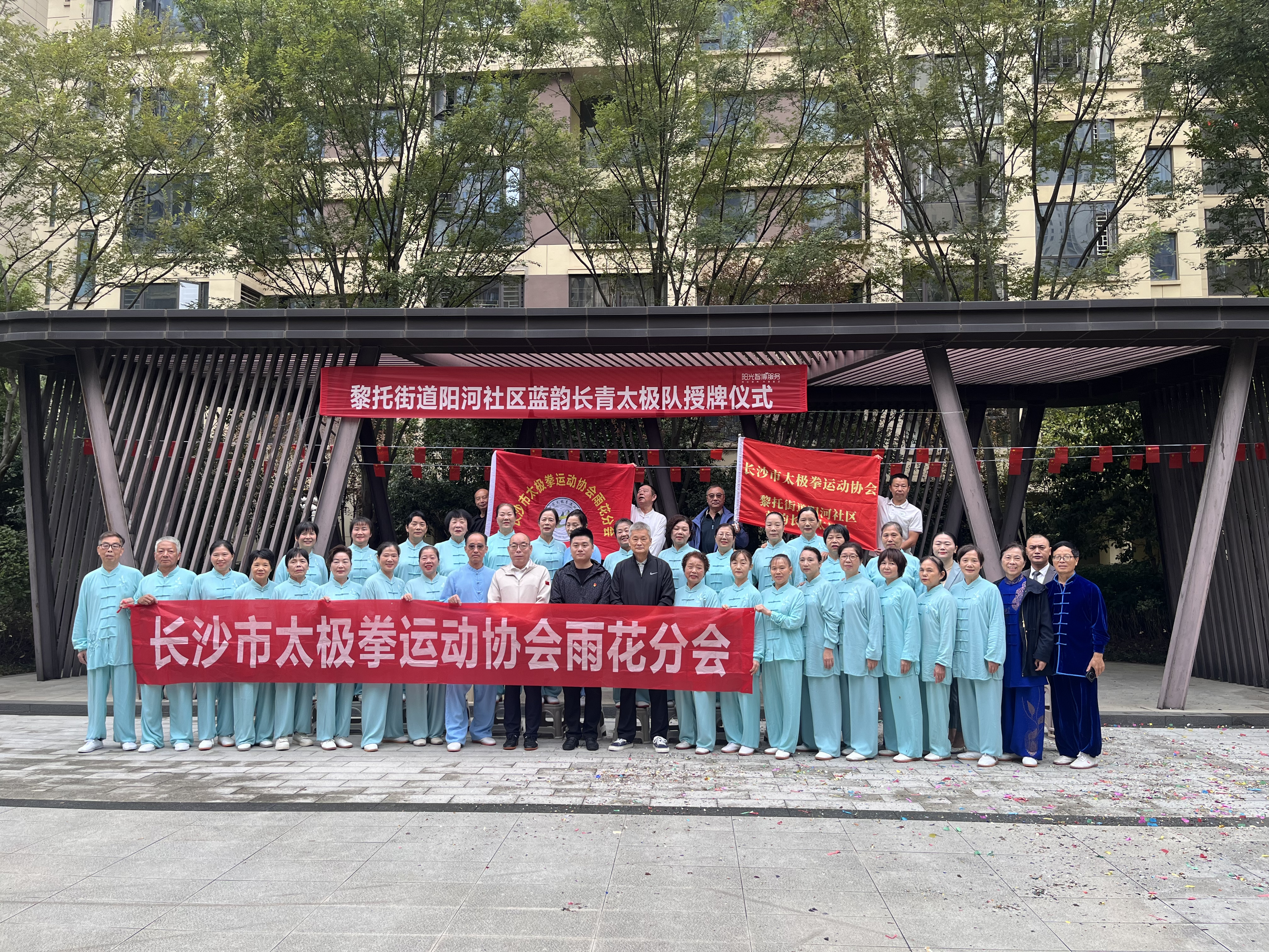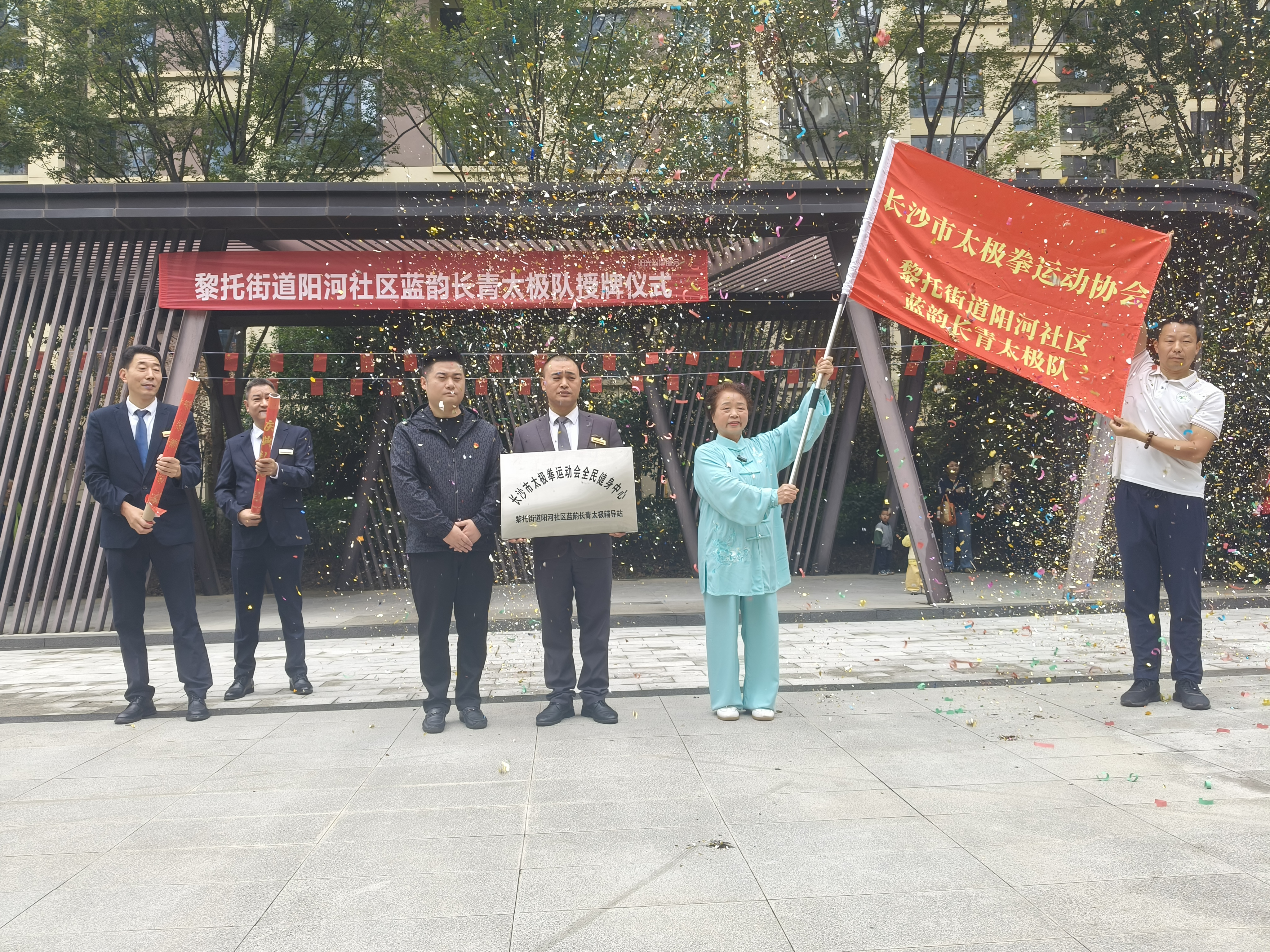长沙市雨花区黎托街道阳河社区深耕“党建聚力·和美星城”建设内核,擦亮“向阳而行”社区服务品牌,于9月26日上午在阳光城尚东湾蓝莓苑小区举办“蓝韵长青太极队授牌授旗仪式”。湖南省武术协会、长沙市太极拳运动协会等10余位领导专家莅临指导,100余名社区居民与演职人员齐聚现场,共同见证这场以文化激活基层活力的民生盛事。
