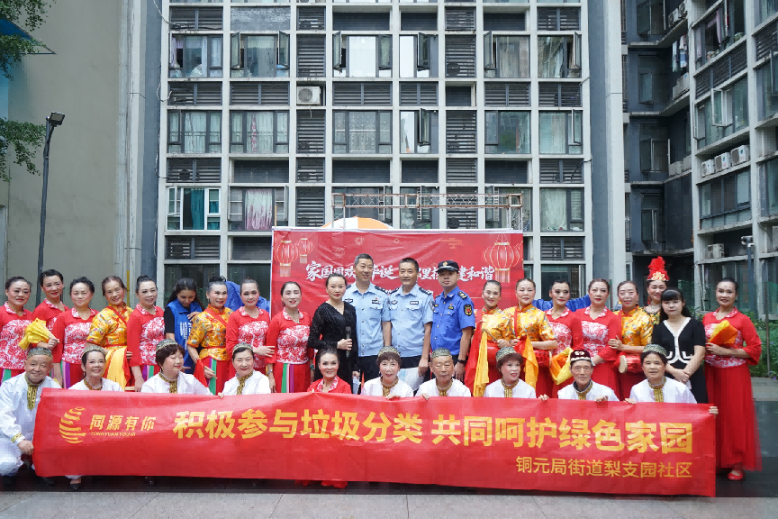 国庆与中秋“双节”的脚步日益临近,为营造喜庆祥和的节日氛围,更深化居民垃圾分类意识,9月26日上午,铜元局街道城市管理执法大队联合梨支园社区、重庆融创致美物业服务有限公司及重庆南岸正舸口腔,在梨支园社区辖区内共同举办了以“家国同欢庆华诞邻里携手建和谐”为主题的文艺演出。这场活动将节日的温暖祝福与绿色环保理念深度交融,为众多居民带来了一场兼具仪式感与实用性的文化盛宴。