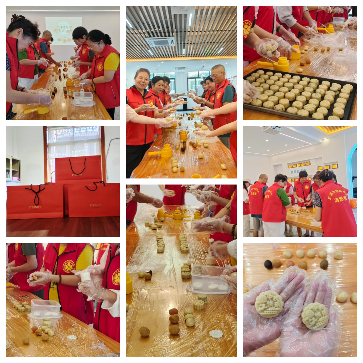 随着溢出的阵阵饼香,此刻迎来了最温暖的环节。社区志愿者将刚烘焙好的月饼细心地分装进特别定制的礼盒中。“郑奶奶,这是我们自己做的月饼,一点小心意,祝您中秋快乐,身体康健。”社区慈善志愿者将礼盒放下后,与老人寒暄片刻。郑奶奶非常乐于参与社区事务,也十分支持公益事业。一组组“红马甲”们带着美好的祝愿和寓意团圆的月饼礼盒,敲开了困难群体、残障群体、老党员等的家门,将节日的温暖送至他们的心田。