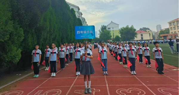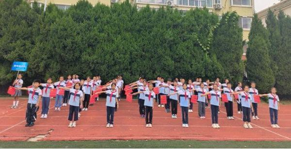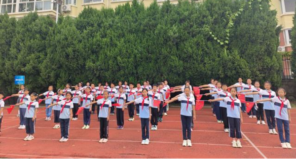 旗舞飞扬展英姿 活力四射绽风采——烟台市莱山区实验小学运动会四年级旗舞方队开幕式惊艳亮相