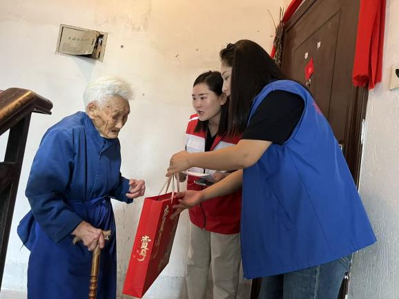 活动的暖心高潮当属特殊老人慰问环节。所有现场活动结束后,社工与社区工作人员迅速集合,带着活动中老人们亲手制作的月饼及精心准备的慰问品,前往复兴社区内90岁以上未到场参与活动的特殊老人家中。每到一户,大家都与老人亲切交谈,关切询问其身体状况与生活需求,送上中秋祝福与慰问品,用真诚的陪伴驱散老人的孤独感,让他们在节日里感受到社区大家庭的温暖与关怀。