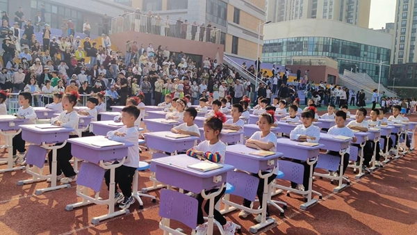 一年级在模拟课堂情境中,从课前文具摆放到师生问好,从读书写字的端正姿势到举手发言的响亮回答,每一个环节都做得有条不紊、有模有样。他们挺直的小小脊梁,专注的明亮眼神,完美诠释了“坐如钟,站如松”的课堂规范,见证了孩子们从幼儿园到小学的成功蜕变。