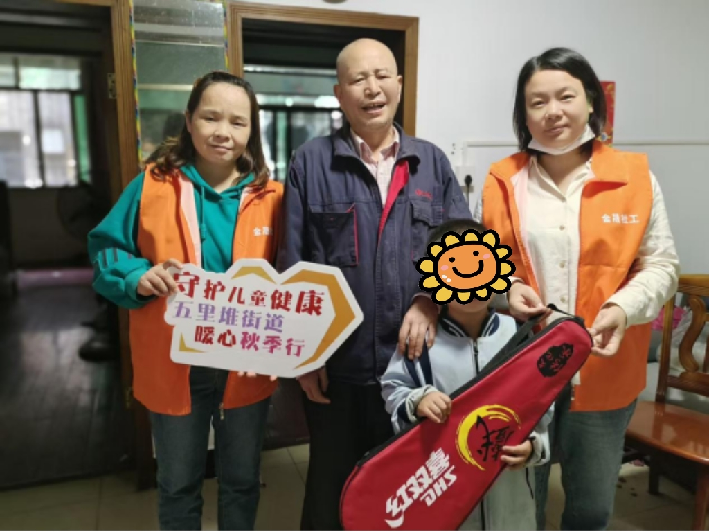 中秋佳节将至,为让辖区困境儿童感受到节日的温暖与社会的关怀,连日来,湘潭市岳塘区五里堆街道联合岳塘区金晟社会工作服务中心开展“情暖中秋·关爱成长”困境儿童专项帮扶活动。活动通过赠送体育器材、入户心理疏导等形式,为孩子们送去健康关怀与成长助力,用实际行动编织起关爱困境未成年人的“温暖网络”。