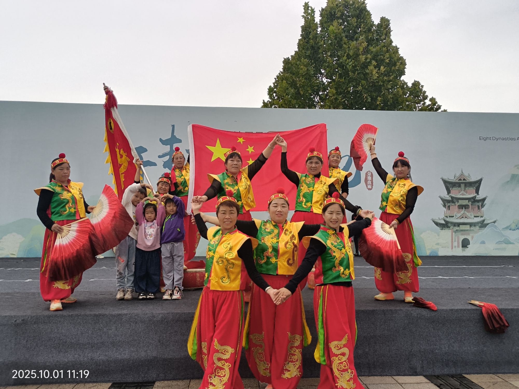 10月1日上午,一场惠民汇演在街道金明池东广场场开演。尽管仅安排了1个舞蹈节目与1个擂鼓表演,但演员们饱满的热情感染了在场每一位观众。孩子们围在舞台前,随着鼓点拍手欢呼,老人们坐在长椅上笑意盈盈,演出现场掌声与欢笑声此起彼伏。汇演结束后,全体演职人员与现场群众共同手持小国旗合影,鲜红的国旗与一张张笑脸相映成趣,将“文化惠民”的要求转化为群众看得见、摸得着的幸福感。