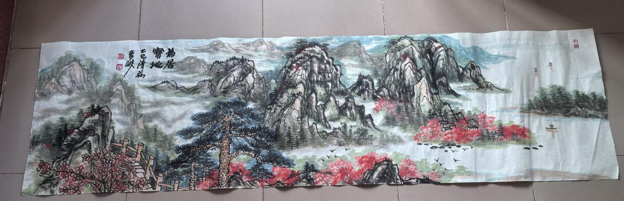 一幅《锦绣山河》,水墨晕染的山峦间点缀着重彩勾勒的繁花,工笔细腻的飞鸟穿梭于写意泼墨的云雾,传统与现代碰撞,写实与意境交融,令人拍案叫绝。他的作品不仅在各类展览中屡获赞誉,更有众多佳作被单位及个人争相收藏,成为文化交流与传承的珍贵载体。