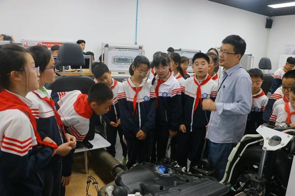 活动中,在全国技术能手王广义老师的带领下,学生们参观了汽车技术技能中心。新能源汽车原理演示让孩子们直观了解了汽车的制作过程,同时还学习了“汽车逃生技巧”等知识。