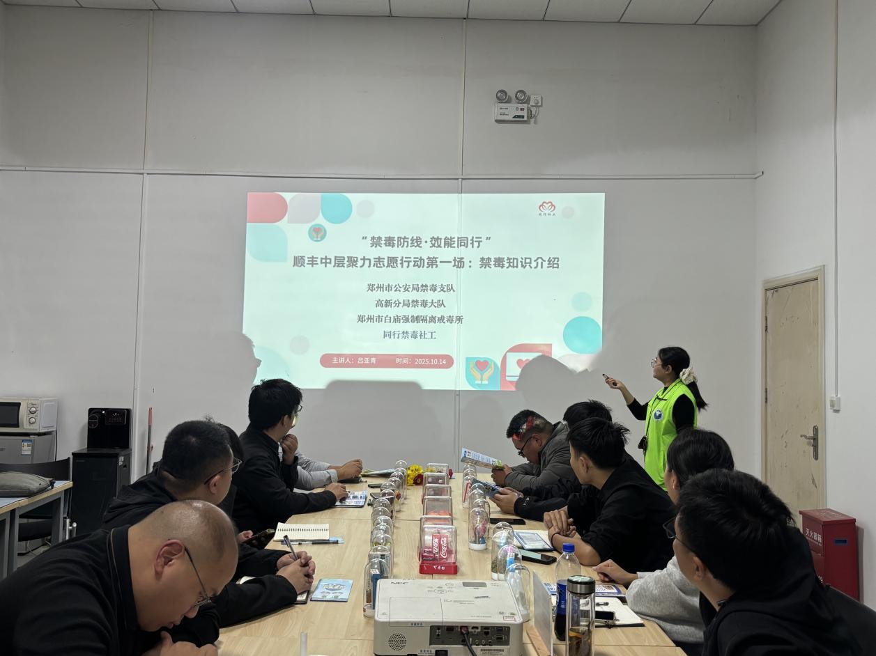 项目并未忽视企业管理层在推动这项工作中的关键作用。“顺丰中层聚力行动”旨在激发和调动顺丰公司中层管理人员的积极性与领导力,他们是公司政策传导、组织动员的核心环节。下午,针对顺丰中层的专项培训在惠济区顺丰速运隆兴网点正式启动,禁毒社工主要从常见毒品类型、毒品危害、快递涉毒案例分析以及防范措施与流程这四个方面科普禁毒知识,让在场管理者频频点头。在仿真模型学习环节,伪装成奶茶粉、香水、巧克力的毒品仿真模型整齐排列,管理者们围在桌前,或俯身观察,或轻声交流,有的还戴上手套拿起模型仔细触摸,禁毒社工在一旁耐心讲解每种模型的识别要点,从气味、重量到包装细节,无一不细,使抽象的“识别技巧”变成了可触摸、可记忆的“实操指南”。