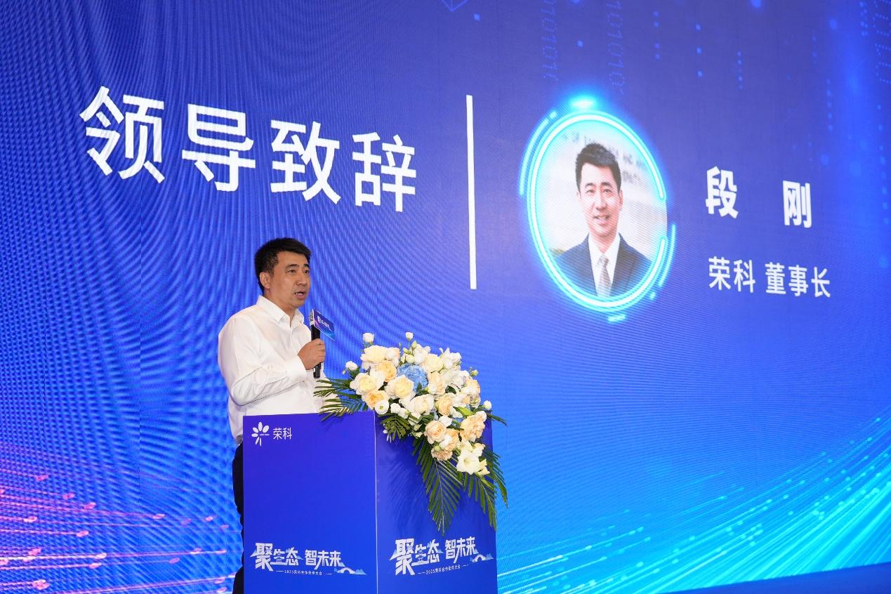 荣科党支部书记、董事长段刚代表董事会、全体荣科人向长期合作的伙伴表示感谢,并简要分享AI背景下荣科的发展决心。他表示,2025年,适逢公司成立20周年,本次大会不仅是对合作伙伴的感恩与感谢,更是开启协同发展的全新起点。他谈到,一路走来,荣科始终不忘初心,以创新驱动发展,践行智能战略主线,构建起覆盖智慧医院、智慧民生、智慧健康、智慧能源等领域丰富的数智化产品体系。他强调,未来,荣科将继续内化企业发展基因,外化合作共赢实践,精诚合作、创新协同,与合作伙伴在数字经济的新征程上共创辉煌、共赢未来!